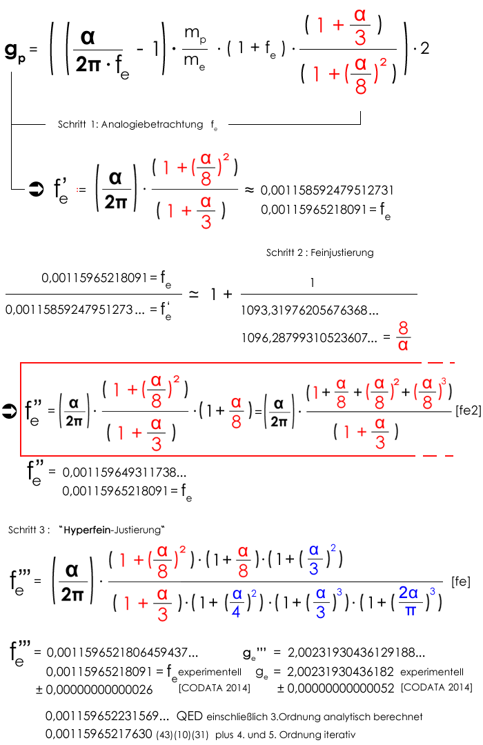 Vorbetrachtungen Das generelle Problem - aus naturphilosophischer Sicht - der theoretischen Verfeinerung zur Ermittlung (vermeintlich anomaler) magnetischer Momente im Rahmen der Quantenelektrodynamik (QED) und der Quantenchromodynamik (QCD) ergibt sich aus dem phänomenologischen „Umstand“, daß der anomale Teil nicht intrinsisch ist, sondern stets aus dem messungsinhärenten Magnetfeld selbst stammt, wie explizit bei Elektron, Proton und Neutron gezeigt wird. In einfachen Worten: Es wird von den Standardmodell-Protagonisten zur Anatomie der magnetischen Momente kolossal epizyklisch das Thema verfehlt. Des Weiteren: Die experimentell gestützte (Zahlen-)Analyse und die resultierend phänomenologisch begründete Formalisierung - im Denkmodell radius-masse-gekoppelter Objekte - demontieren die Annahme (asymmetrisch) Quarks-Seaquarks-Gluonen-substrukturierter Protonen und Neutronen.