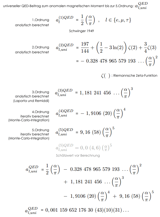 „einfach lösbaren“ gehören. Neben dem Schwinger-Term (α/2π) beinhaltet der quadratische Korrekturterm 7