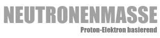 Es wurden zur Berechnung der Neutronenmasse folgende Werte verwendet: me = 9,1093837015e-31 kg : Elektronenmasse me(q0)= (4/α) · me = 4,99325398628715e-28 kg mp = 1,67262192369e-27 kg : Protonenmasse c = 2,99792458e+08 m/s α = 0,0072973525693 0,77010243595795497 = 1/(1 + me(q0)/mp) ∆m = 1,4056007019747e-30 kg[0] ∆Eee = 1,2632909101359e-13 J ~ 0,78848416793 MeV